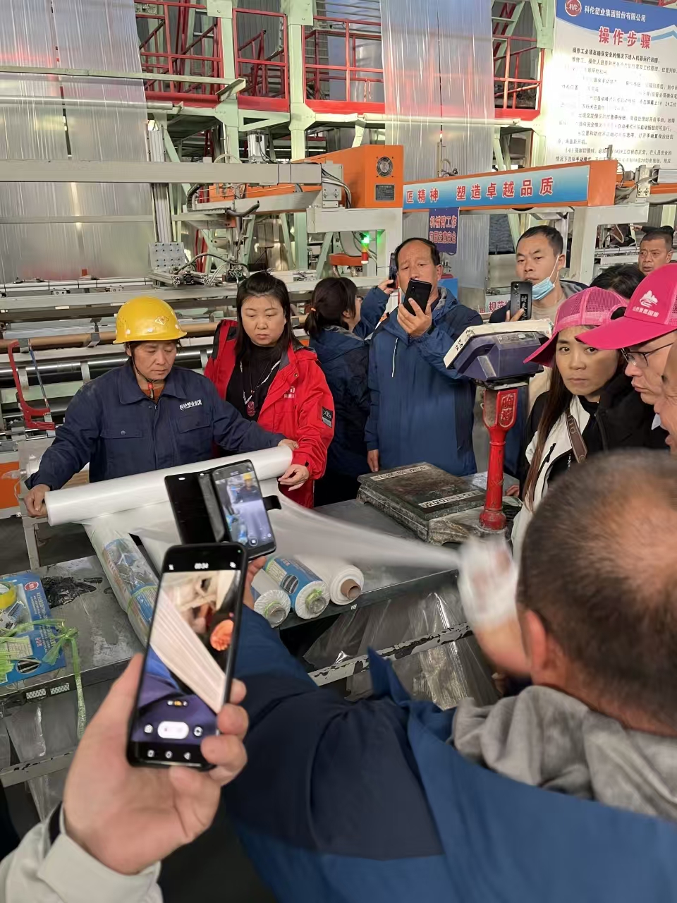 在集團領導和公司銷售、技術人員的帶領下,考察團參觀了功能棚膜車間、地膜車間、技術研發(fā)中心、展廳等處。科倫塑業(yè)先進的集中棚膜供料設備、智能化地膜自動卷取系統(tǒng)、一流的檢驗檢測儀器受到廣大客商的高度關注和充分肯定。